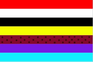 Yellow: Angom clan, Red mixed with black: Moirang clan, Purple: